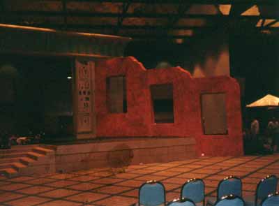 | Home Portfolio Inventory Art Galleries Broad and Cassel Children's Shows Churches Concert / Staging Corporate Sets / Business Theatre Disney Conference Room Exteriors Flooring Futuristic Set Game Shows Gaylord Palms High End Wood & Laminate Interiors JW Marriott Misc. Props Ripley's San Antonio Ripley's Time Square Scenic Painting Sculpted Sets Sesame Street Talk Show / News Anchor Set Theme / Amusement Parks Theme Party Sets Toys R Us Trade Show / Displays Wild Shapes |   Corporate Sets / Business Theatre    IBM Corporate Meeting - Fender StratocasterOne of my favorite pieces. 15' tall replica of a Fender Stratocaster neck. Built for an IBM Corporate meeting. Extremely accurate detail. A "must" to rent for any show that has to do with music. The walls are a grid map of the globe with musical notes floating around. Set is 16 tall & 90'+ wide with 4 rear projection openings and a podium you can really play. Paints and vinyl are fluorescent to achieve many different looks through lighting techniques.   Shell Oil RefineryThis is the only thing in our inventory that we did not build but it is a great corporate rental set of an Oil Refinery complete with functional steel catwalks, ladders, and railings. The two large tanks camera left and right open to reveal huge rear projection openings and 3' deep lighted logo area when opened up. Great rental set. Call today! See next picture to learn more.  Canavan Business Theater SetGeneric 16 x 80 fabric covered business theater set with glass block panels, screen surround and large crown.  Pega Systems Corporate SetLeft side of huge corporate set with stucco columns, walls, and large dimensional crown including podium and scenic paint. Sold